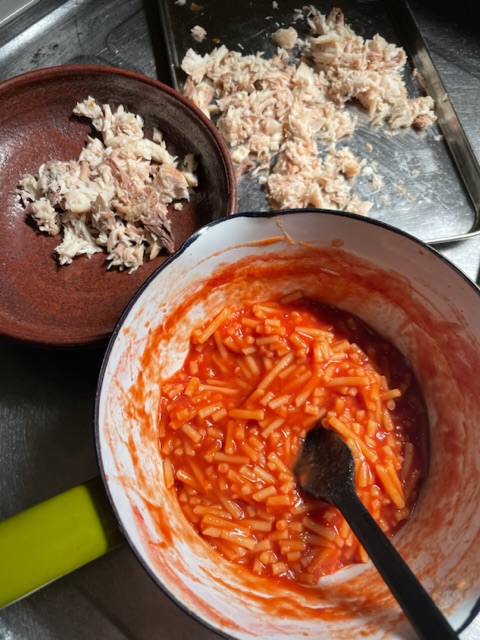 お魚はイナダのカマ!焼いてほぐして。