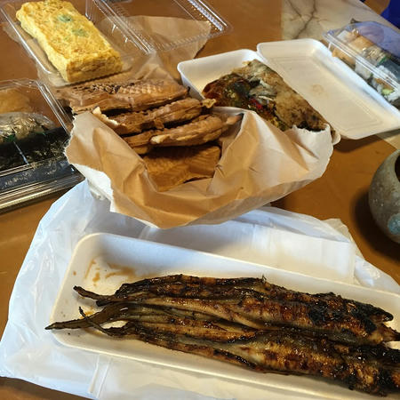 焼きアナゴ、カキ入りお好み焼き、たい焼き、厚焼きたまご、巻きずし・・・