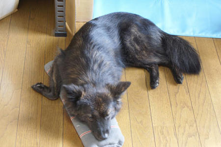 しか~し、暑いだろうに日なたでじっとしてつながれた時に座ってた場所から動かない。