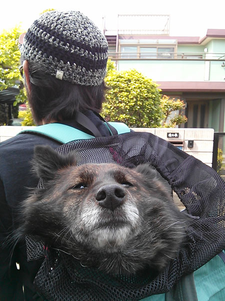 リュックに乗せられたら、他の犬?熊?何??って感じになってしまったion。