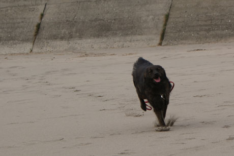 海の中には入りたがらないですけどね。(波がこわいみたい・・・)