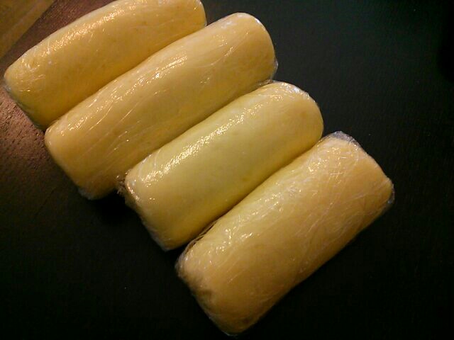 小判がたに作っていくんだけど、私の場合面倒なので棒状のものを沢山作って冷凍しておくのです。