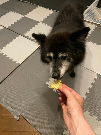 この時は逆におやつやひき肉とかじゃダメ。「ドックフード出して!」と。