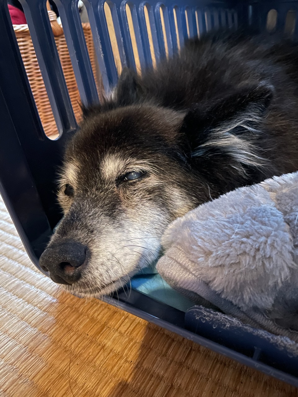 小さいころから寝るのはこのクレートか私たちのベットの下に入り込んでるか後はそこらへんにゴロン!でした。