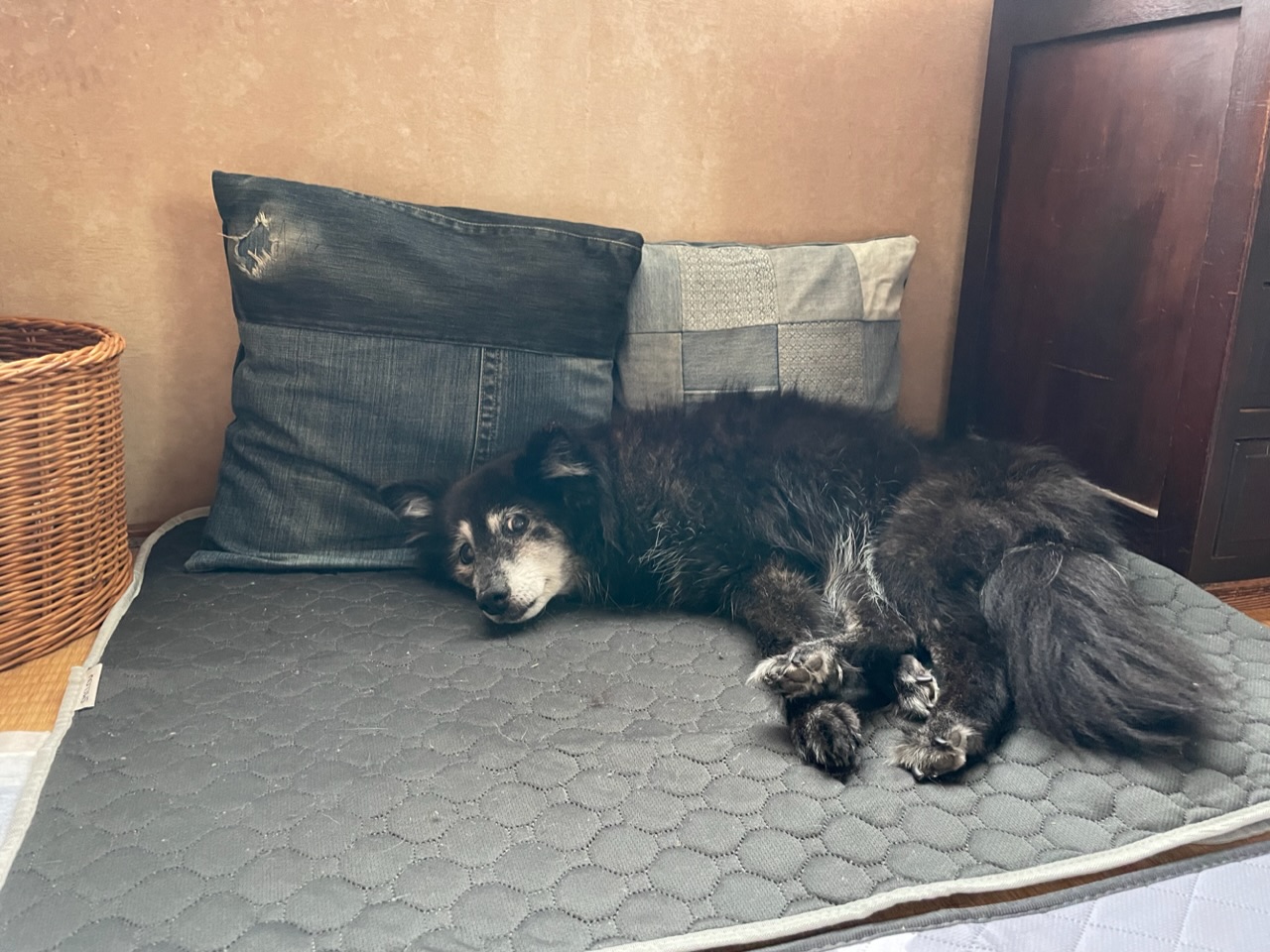 今は「防水マットとクッション」か「クレート」好きな時に好きな方で寝ています。