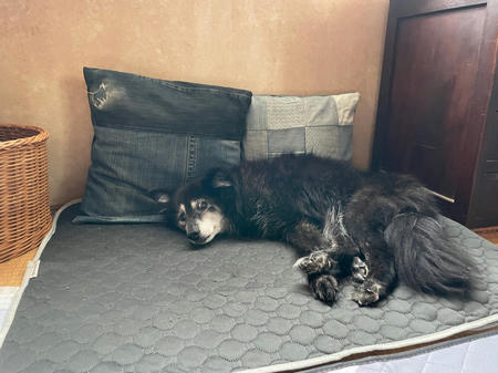 クレートが調子よさそうだったので「防水マットとクッション」を置いていたところは片づけてしまったら、今度はそこにも寝たそうにし始めたので再び設置。