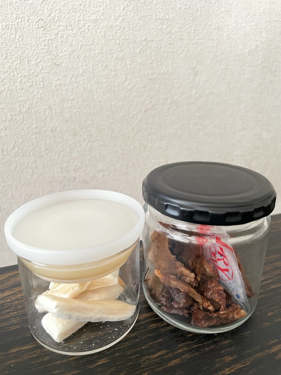 具合が悪いときはちょっと固いと食べなかったのですが、昨日お友達が作ってきてくれたささみジャーキーを美味しそうに食べていて。
