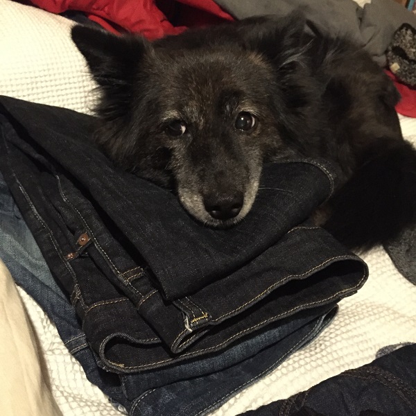 「洗いたてのジーンズはごわごわして枕にさいこ~」