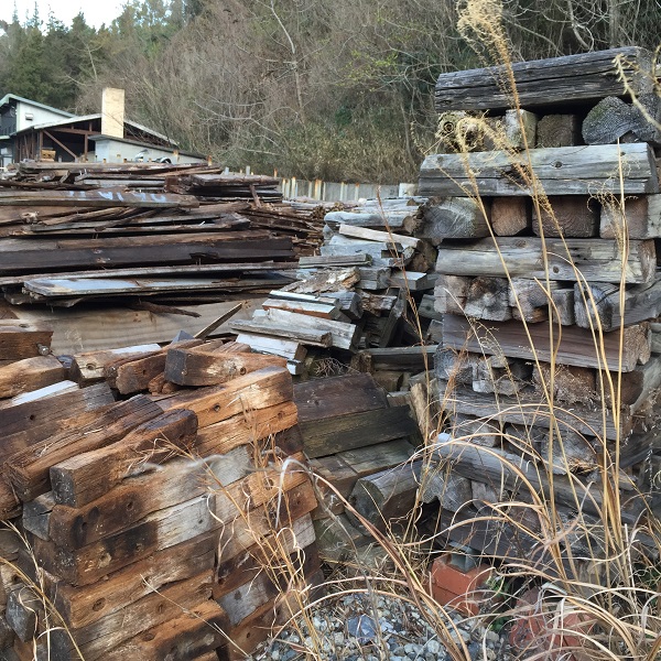 外には薪がいっぱーい。