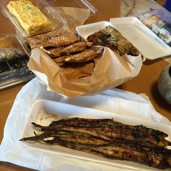 焼きアナゴ、カキ入りお好み焼き、たい焼き、厚焼きたまご、巻きずし・・・