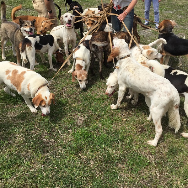 こーんな感じでぞろぞろやってくる保護犬たち。